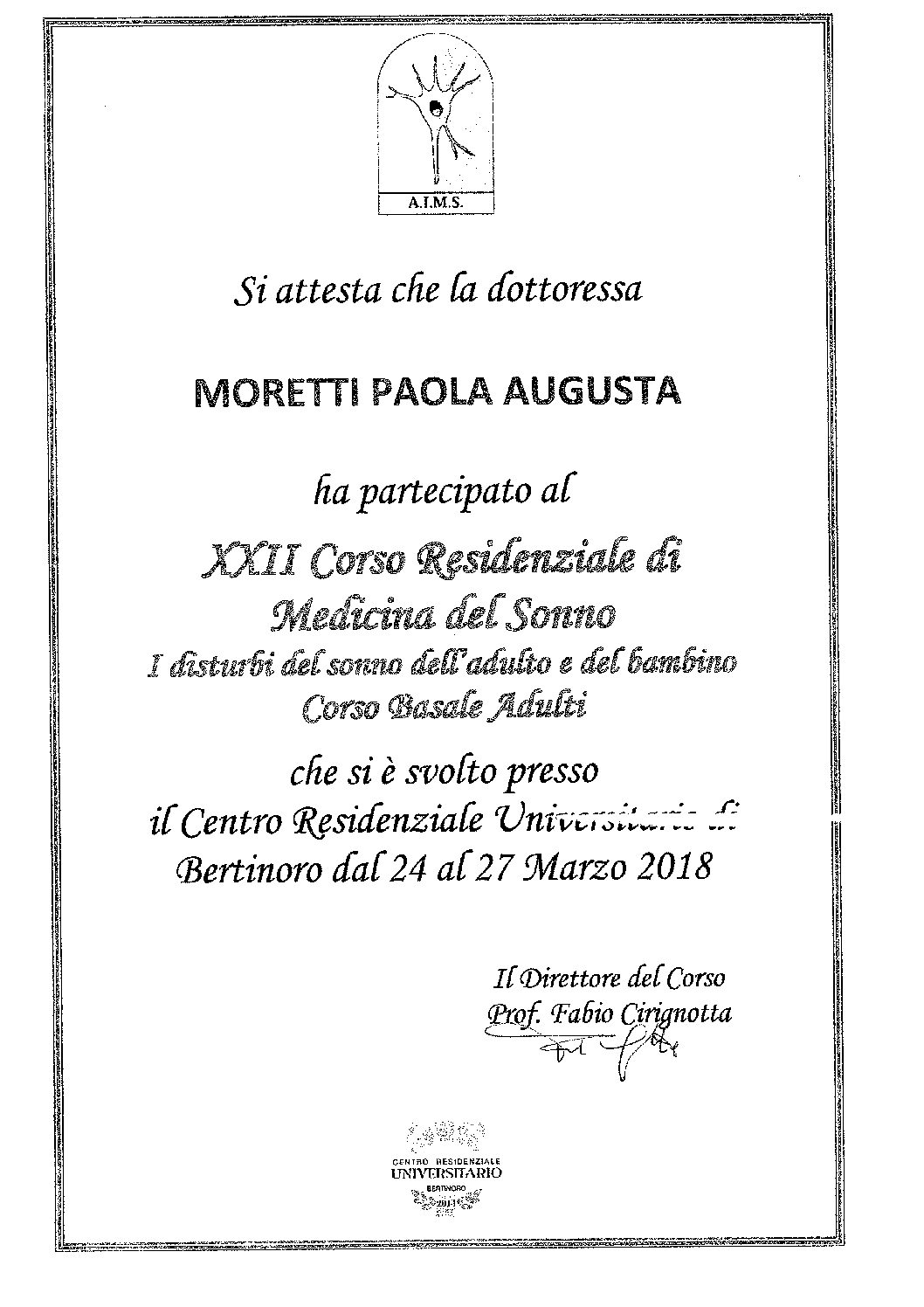 Corso Residenziale di Medicina del Sonno