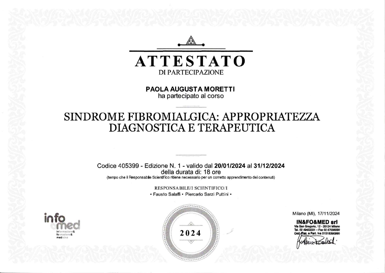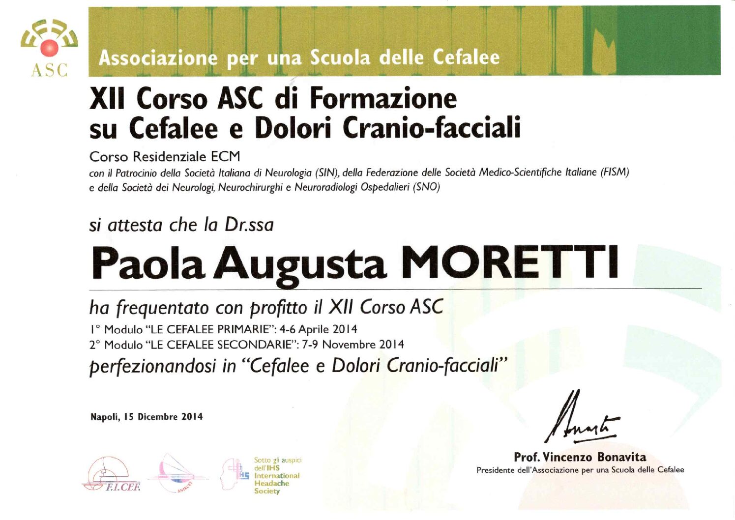 Nel corso degli anni, la Dott.ssa Paola Moretti ha seguito un percorso di formazione continua per offrire ai propri pazienti un servizio altamente qualificato e aggiornato.